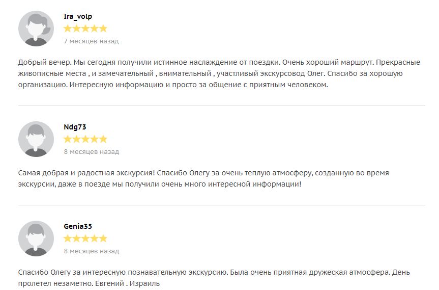 Вот примеры отзывов с экскурсии на английском. Кстати, получить у них отзыв на 5 звезд намного сложнее, чем у русскоговорящих туристов.