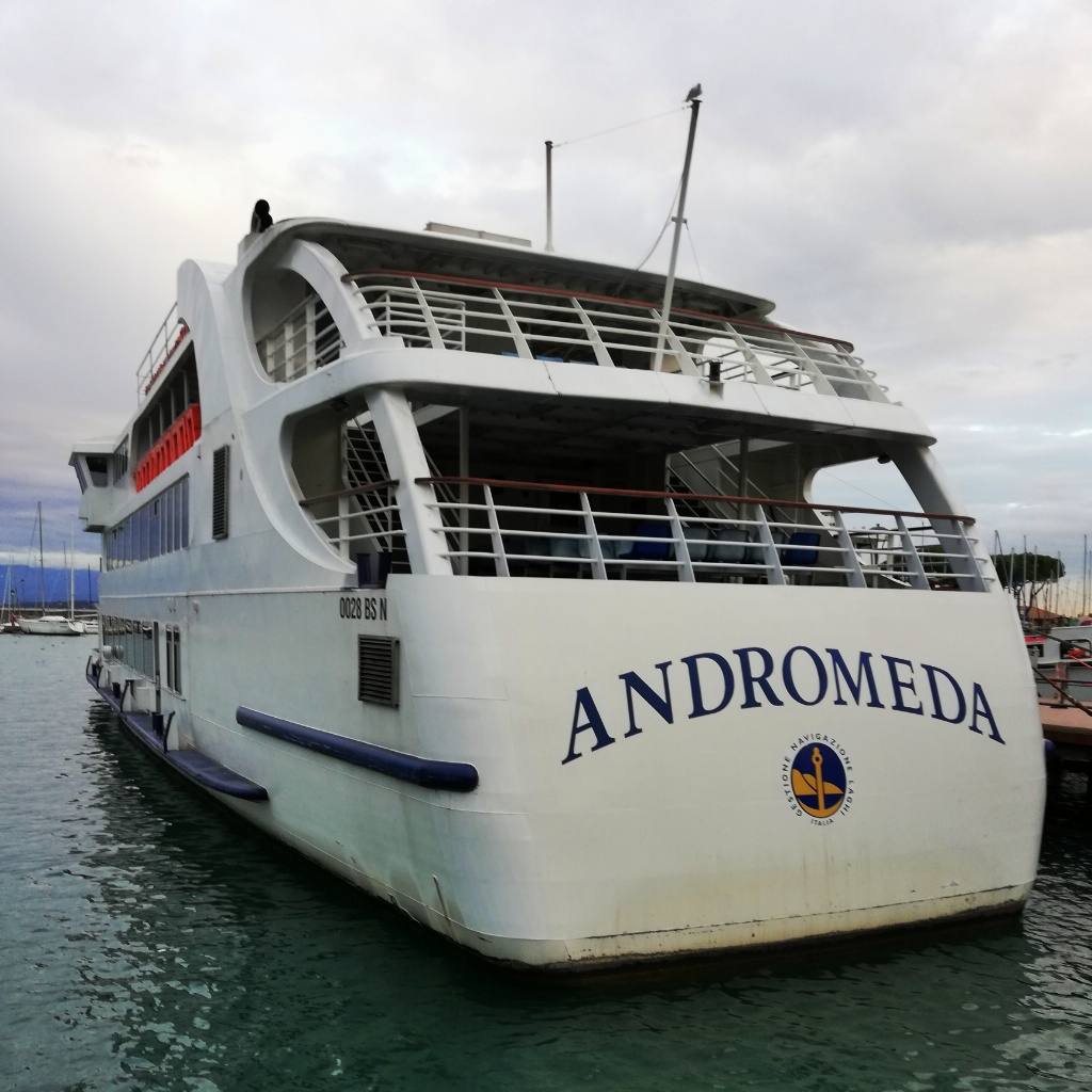 Orione — самый большой корабль озера Комо. В 2018 году на нем было 680 мест, в начале 2019 поверх наклейки 680 наклеили 700. На ровном месте вместимость увеличилась на 20 мест — чудеса. Судно новое (2008 года); имеет 3 палубы, бар и ресторан. Верхняя палуба и нос корабля открыты, в солнечную погоду можете проводить время на открытом воздухе.